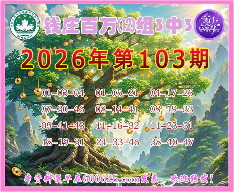 103期:『钱庄百万』 🎀⑿组3中3🎀