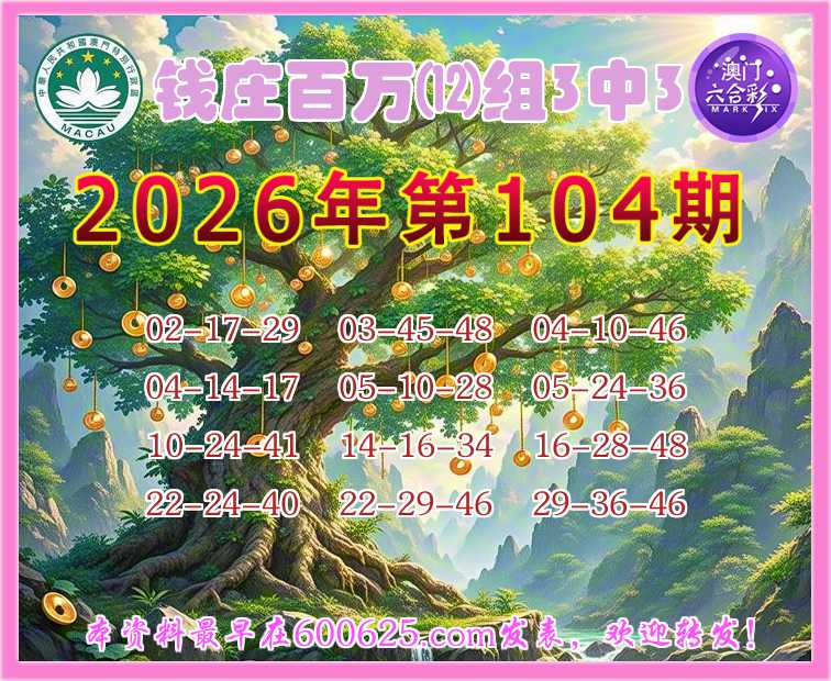104期:『钱庄百万』 🎀⑿组3中3🎀