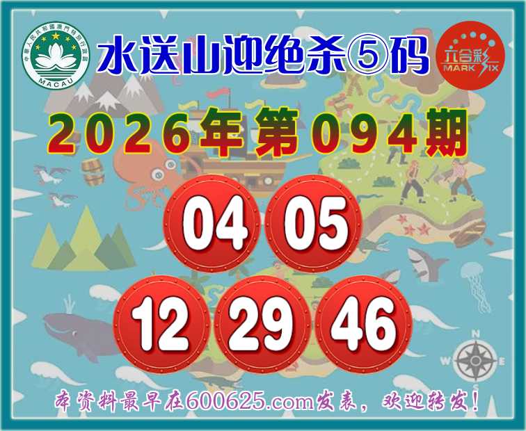 094期: ♦️《水送山迎》 ♦️绝杀⑤码♦️【04.05.12.29.46】开:虎17准上榜高手
