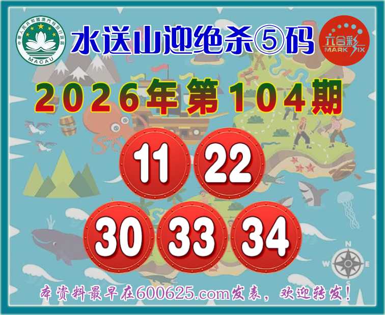 104期: ♦️《水送山迎》 ♦️绝杀⑤码♦️【11.22.30.33.34】开:马01准上榜高手